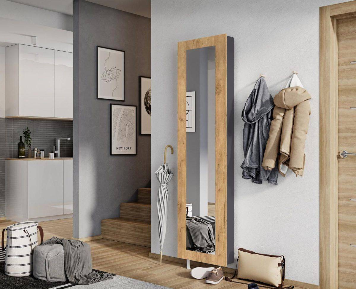 Прочная и надежная входная дверь, дополненная зеркалом в полный рост с красивым стильным обрамлением – это лучшее решение для вашей прихожей.