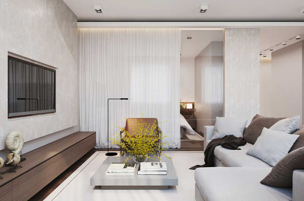 Современный дизайн квартиры 60 кв. м. Фото гостиной