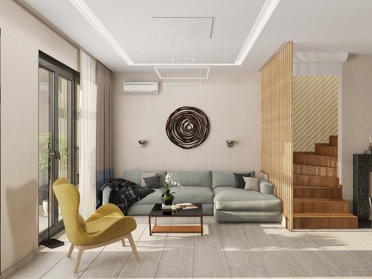 Двухэтажная квартира в стиле минимализм с яркими сочными элементами декора