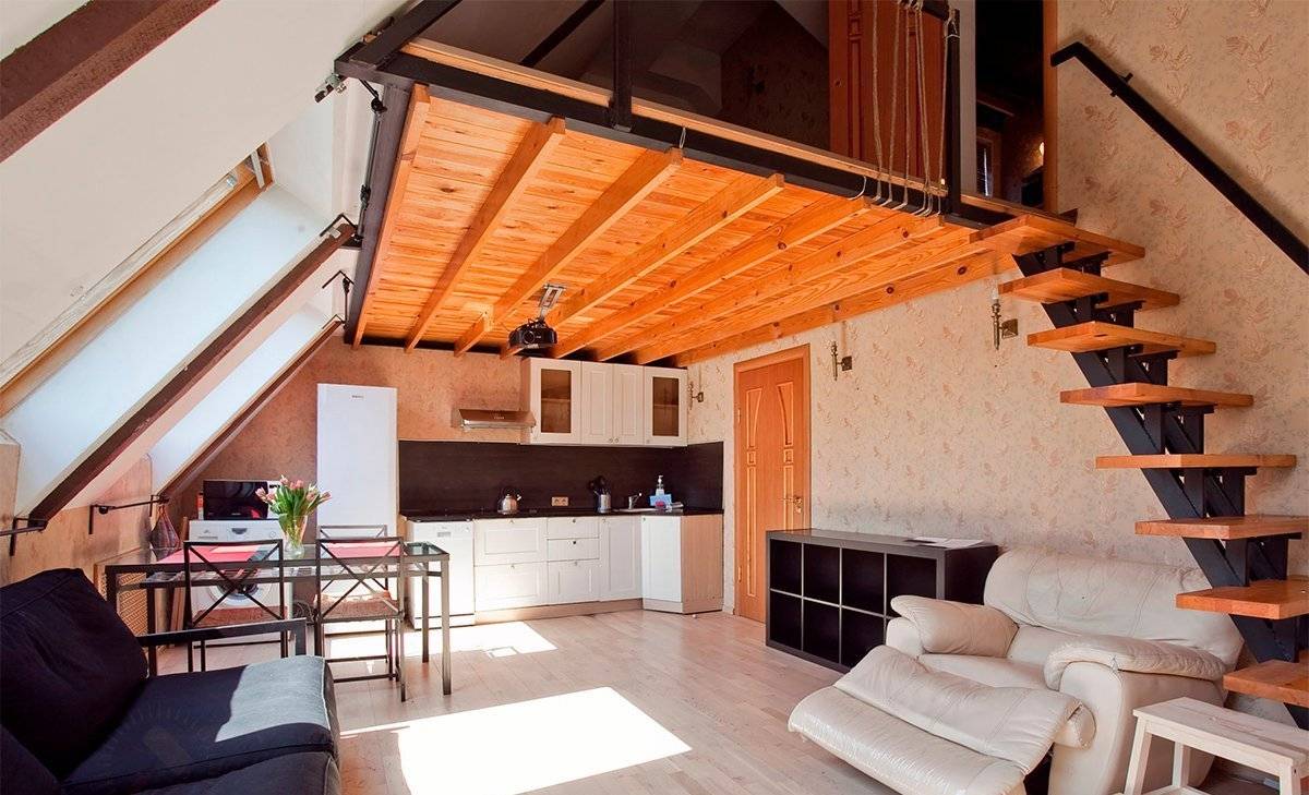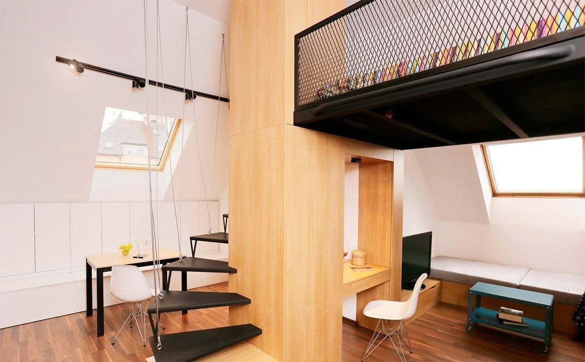 Распространенным видом жилья, которое получается в результате деления комнат в коммунальных квартирах на обособленные объекты недвижимости, являются крошечные студии. Такие варианты можно найти как в столице, так и в городах по всей России. Самые миниатюрные квартиры в этом случае имеют метраж около 9 кв. метров. На такой площади тяжело разместить всю мебель, необходимую для жизни, поэтому именно в таких студиях часто оборудуют антресольную кровать.