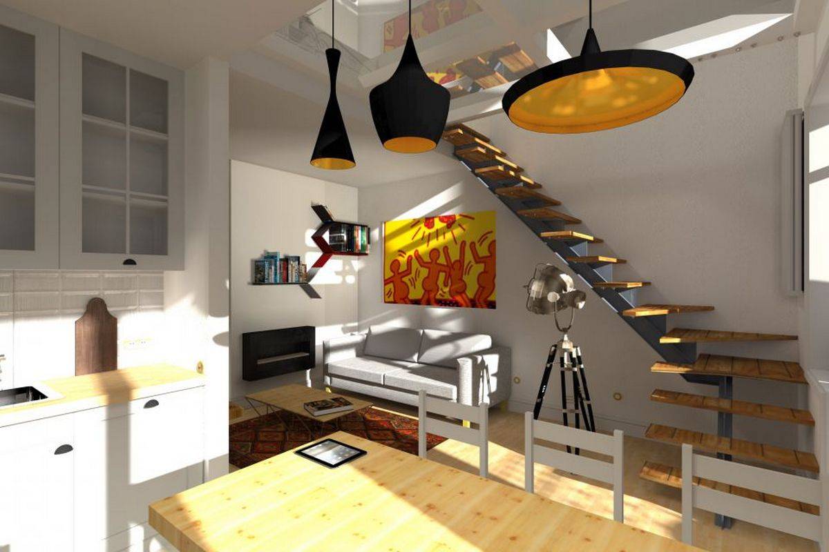Просторная квартира студия в двух уровнях, требующая больших финансовых вложений