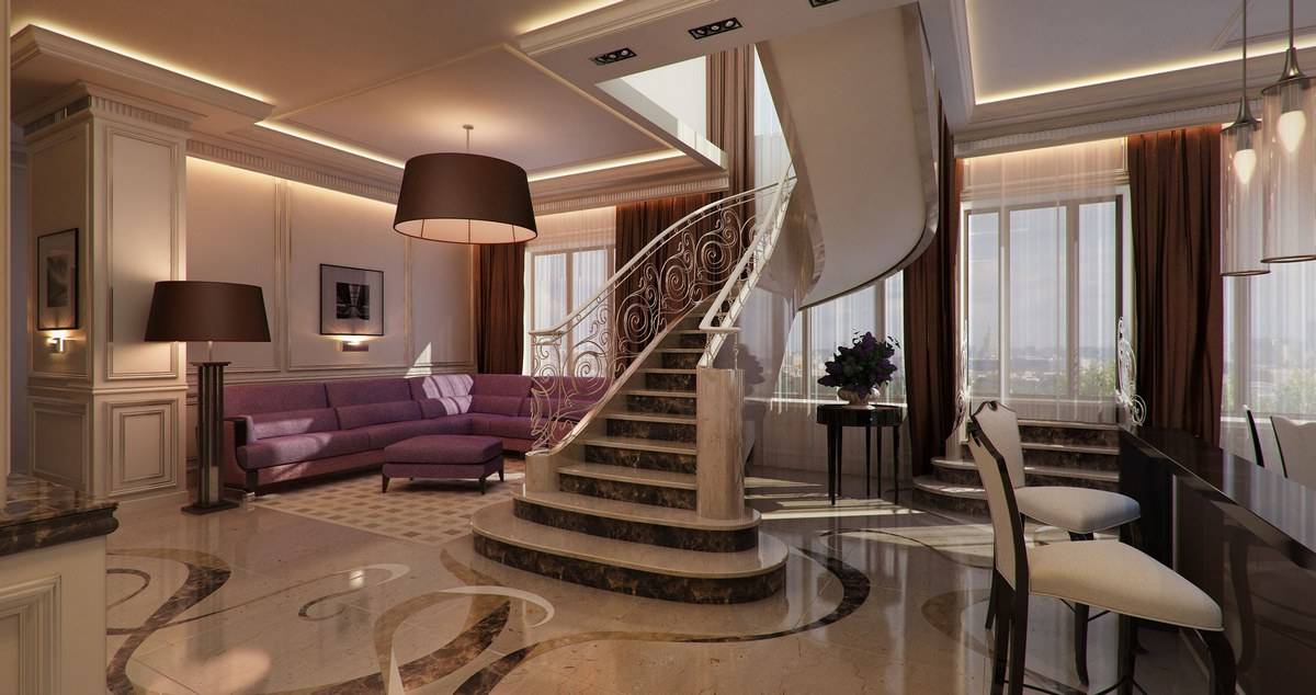 оформление помещений в разных стилях. В отличие от стандартных квартир, двухуровневые апартаменты не требуют какого-либо единства в стилевом решении, поэтому вы можете реализовать самые свои потаенные фантазии в дизайне.