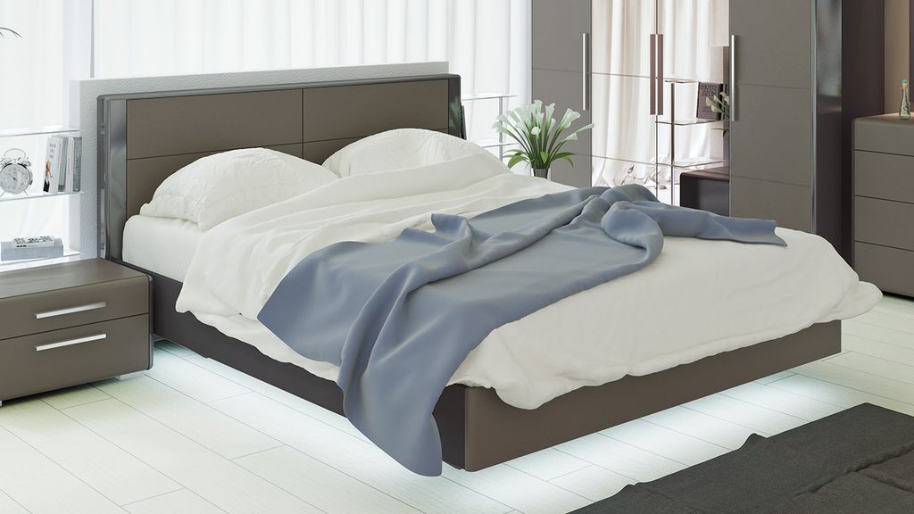 Размер спальни. Кровать можно ставить вплотную к стене и другим предметам мебели. Главное – не располагать ее рядом с обогревателем: нагрев вызовет деформацию каркаса и головные боли у спящих на ней людей.