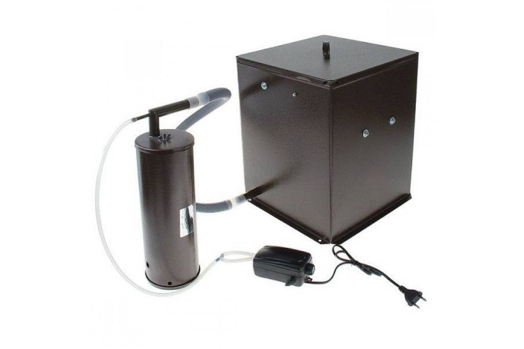 Для небольшой камеры достаточно мощности компрессора в 0,8 атм, с такой задачей легко справляется небольшой прибор, к примеру, аквариумный. Для больших коптилен умельцы используют автомобильные компрессоры или детали от холодильника.