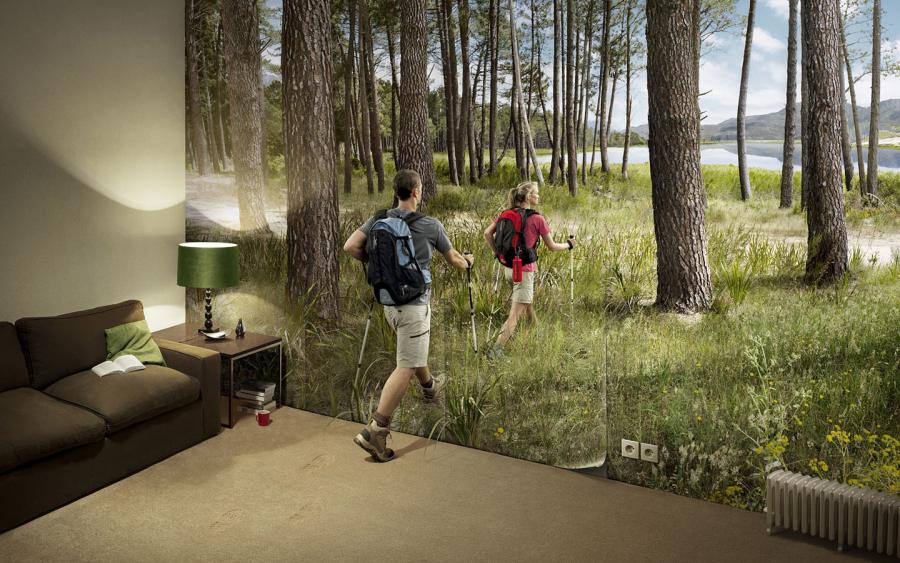 Оживить интерьере гостиной в экостиле помогут фотообои с природой