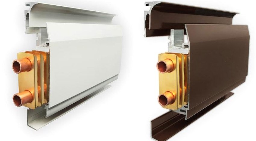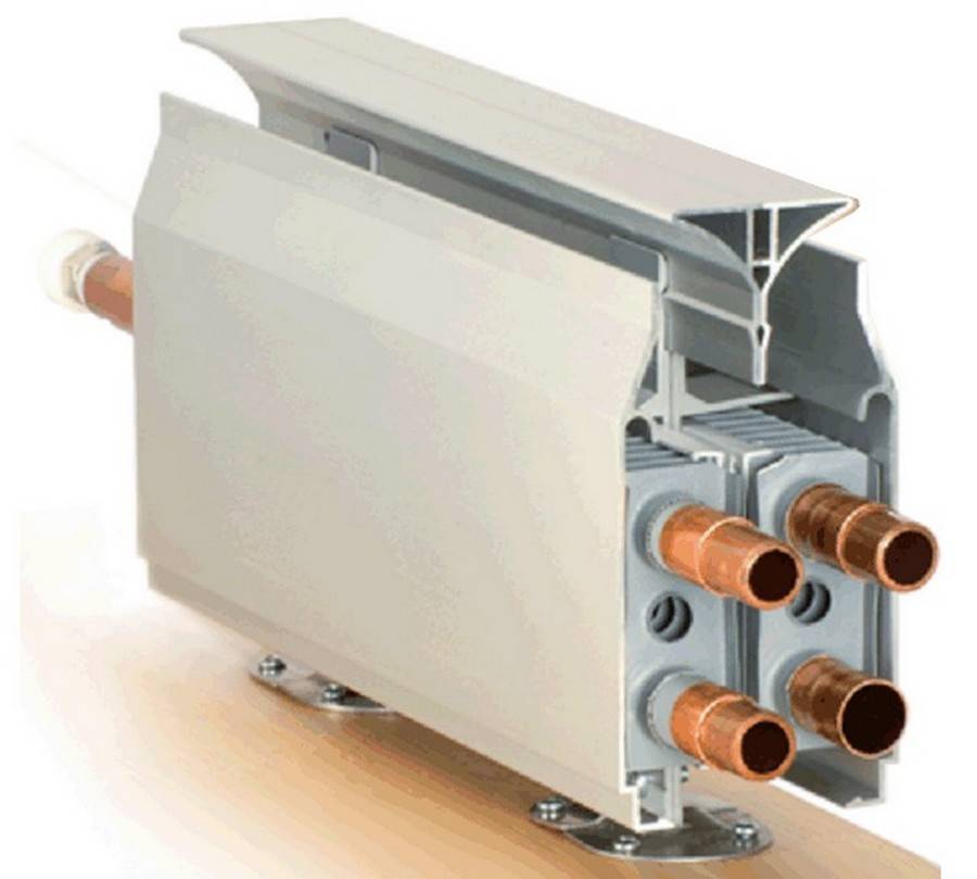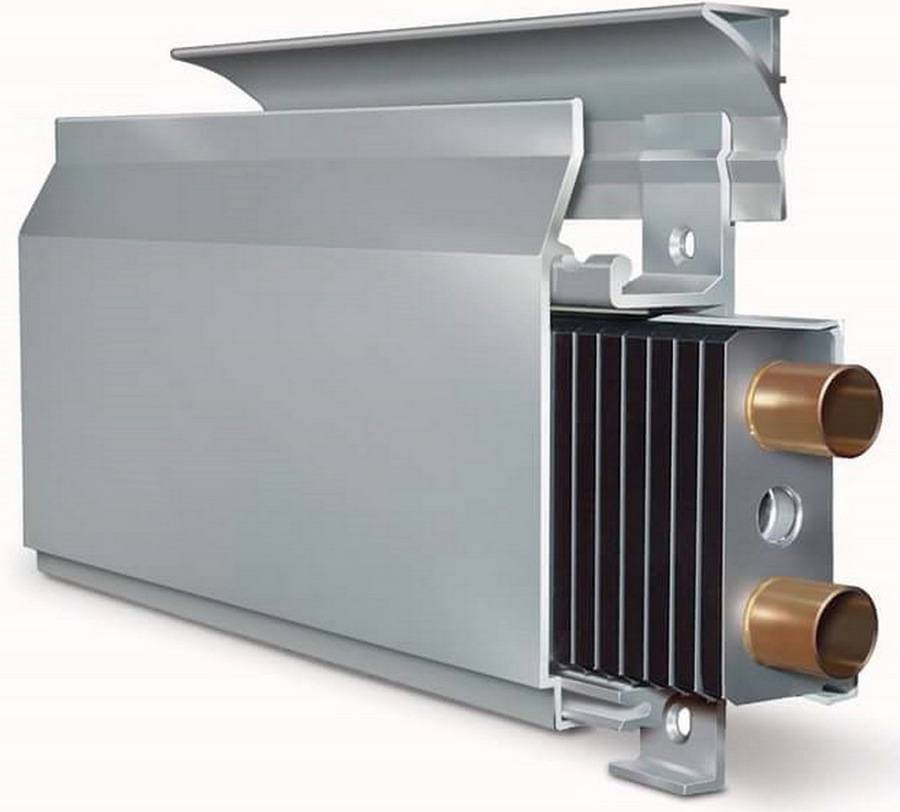 При этом они непросто выбрасывают теплый воздух в окружающее пространство, чтобы он там как-нибудь сам перемешался и прогрел помещение. А представляют собой тонко регулируемую систему микроклимата, так как теплый поток целенаправленно пускается вдоль стены, чтобы потом от нее максимально равномерно обогреть всю комнату. Токо- и теплопроводящие элементы такого оборудования изготовляются из цветных металлов: меди и алюминия.