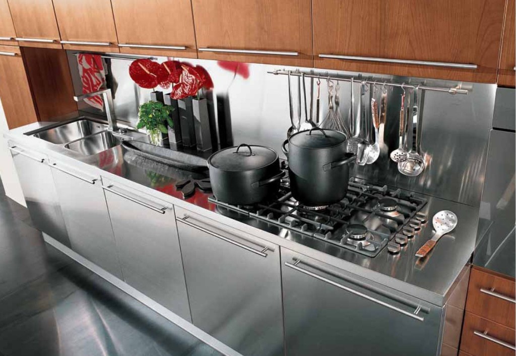 Металлическая рабочая зона элитной кухни