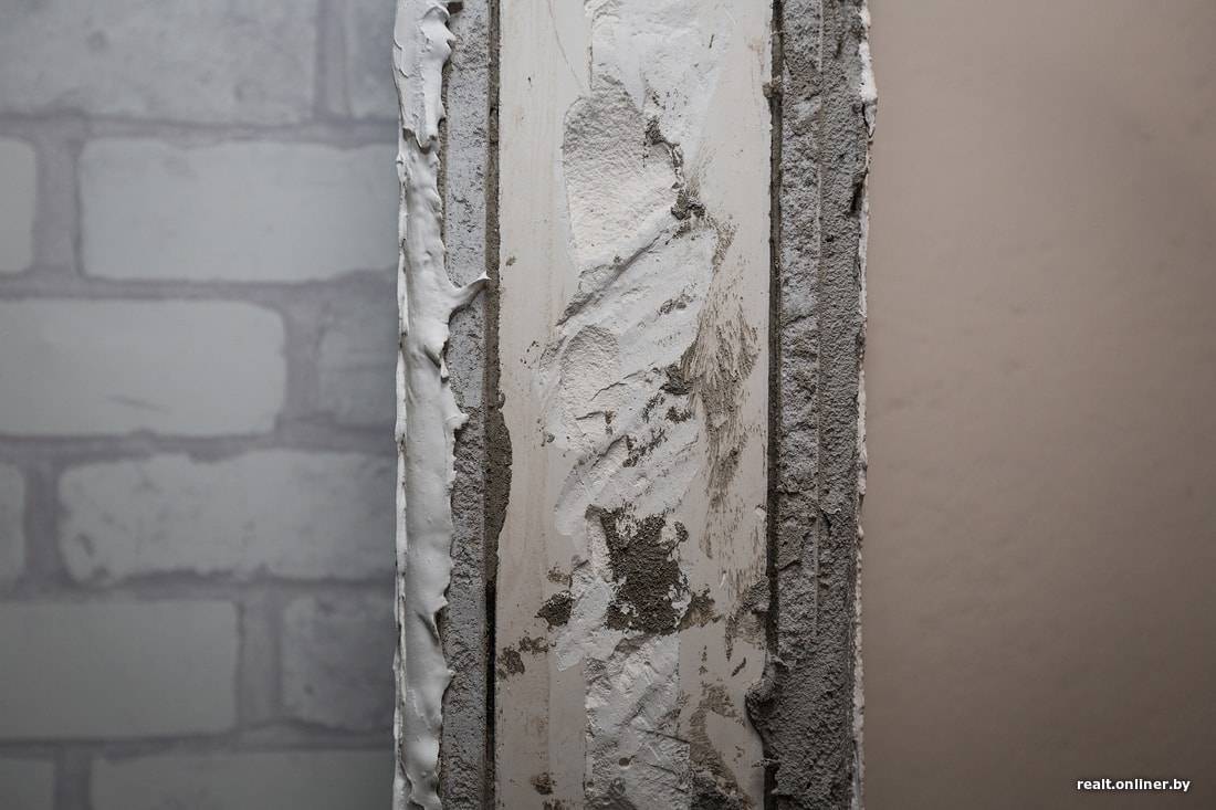 — Похоже на то, что стены в квартире перештукатуривали. Родной слой штукатурки обычно тоньше,— отмечает Александр. —Любопытно, что мастера наворотили что-то непонятное, выстраивая дверной проем. Перегородки в квартире возведены застройщиком из газосиликата, а нанятые мастера использовали гипсовые пазогребневые блоки. На эти блоки затем наклеили гипсокартон, который впоследствии оштукатурили. Для чего это все было надо и почему нельзя было сразу использовать газосиликатные блоки нужной ширины, непонятно.
