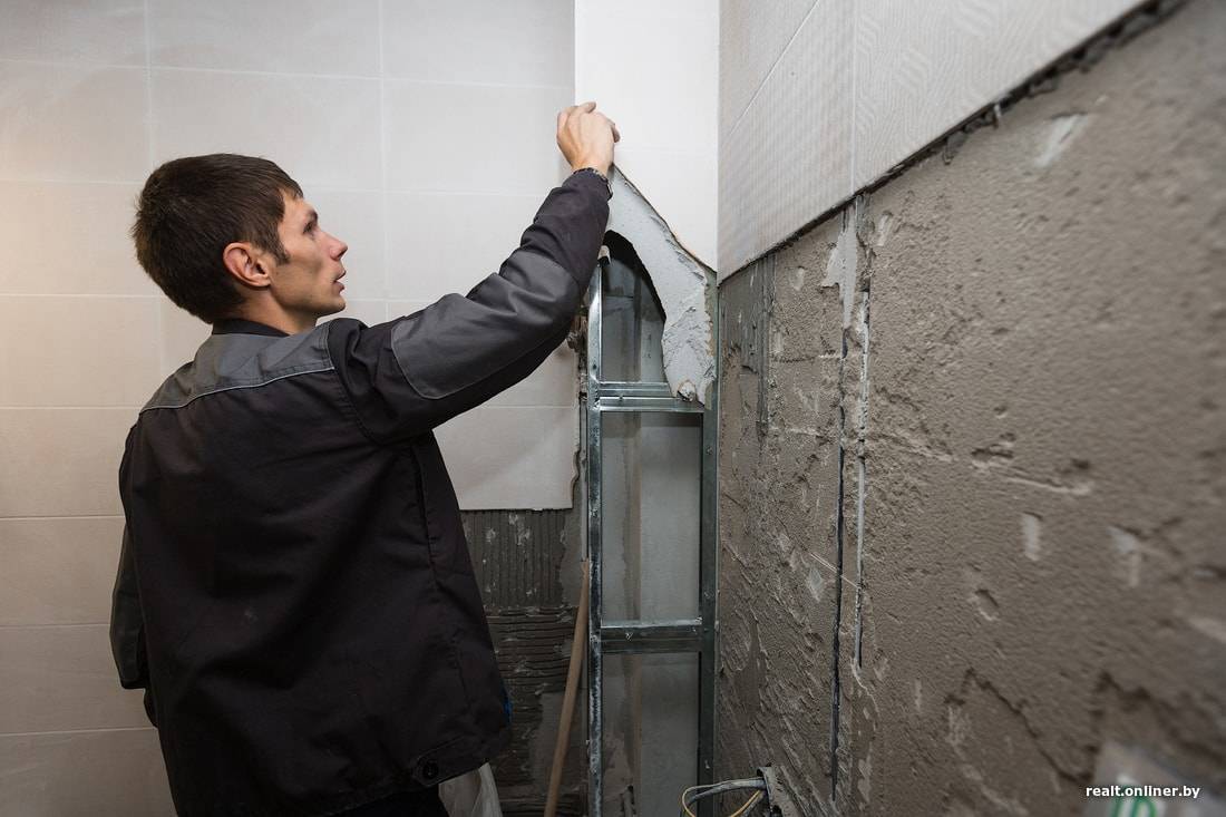 Облицовка санузлов — вершина «мастерства» побывавших в новостройке на Дзержинского ремонтников. Андрей признается, что теперь он, когда бывает в общественных местах — метро, магазинах, — мечтает: вот бы и мне так облицевали. Что об этом «искусстве» думает Александр?