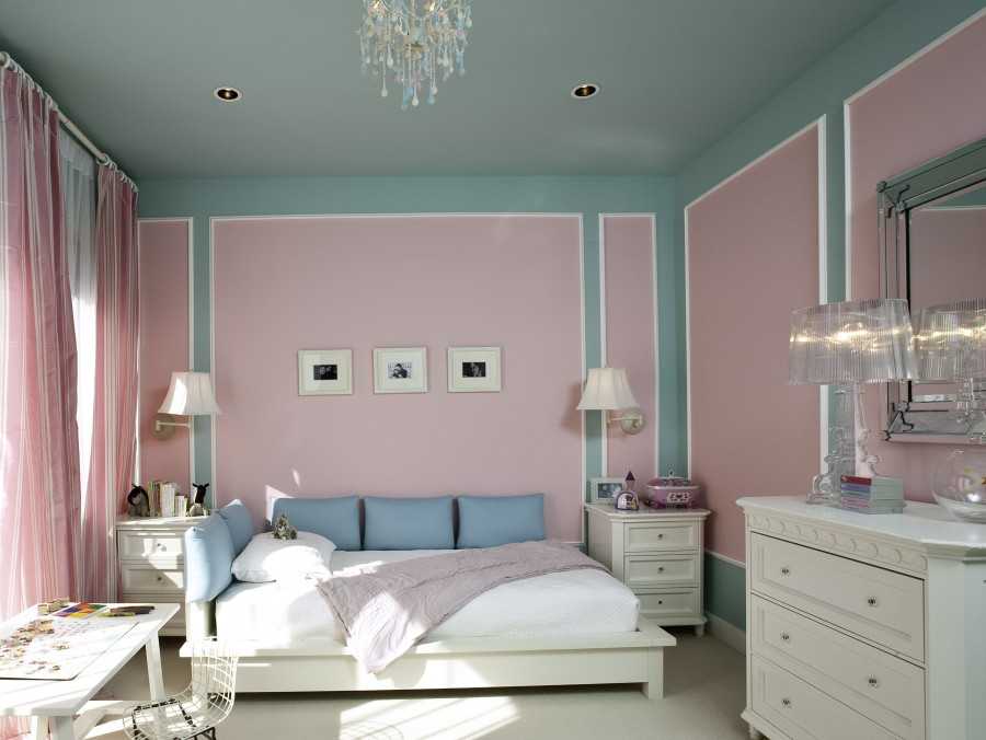 Второй важный фактор — функционал комнаты. Для детских выбирают цветную пастель на все стены. Либо одну из поверхностей делают яркой, акцентной, а остальные — светлыми. Подойдут плоские «теплые» эффекты: шелк, бумага.