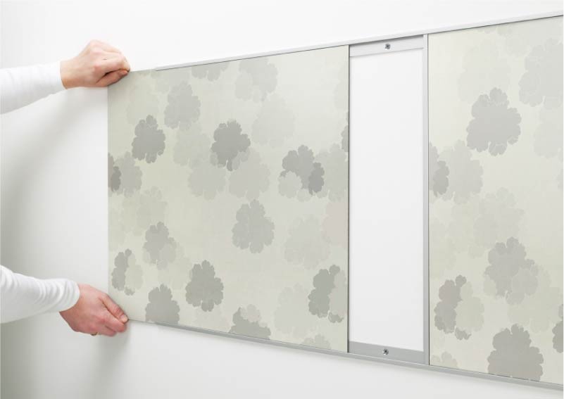 Первый способ крепления – с помощью направляющих. Он будет уместен в случае, если через какое-то время планируется замена панелей. Направляющие – это специальные металлические рейки. Они крепятся к стене горизонтально при помощи саморезов. Листы просто вставляются в направляющие, получается эффект «рельсов». Панели можно с легкостью передвигать.