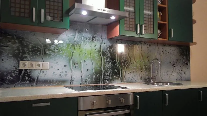 Даже если стеклянный фартук разобьется, он не осыпается, осколки удержит ламинирующий слой