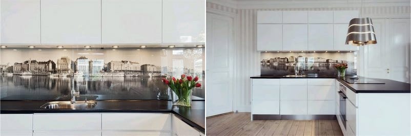 Такие виды стекол призваны защитить поверхность, покрытую росписью, обоями или другими материалами от издержек рабочего процесса на кухне. Имеют недостаток: на бесцветном стекле больше всего виды погрешности уборки.