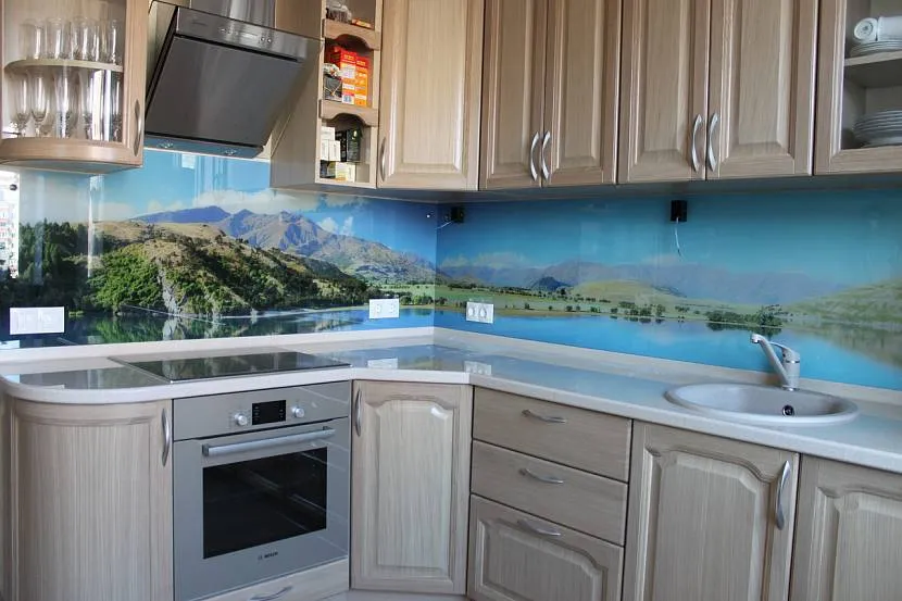 Фартуки из стекла изготовляют с учетом индивидуальных особенностей кухни