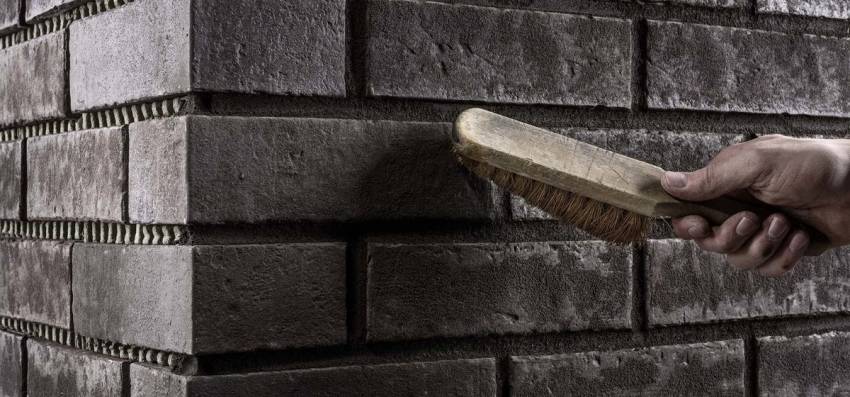 Затирка в сухом виде легко удаляется при помощи металлической щётки.