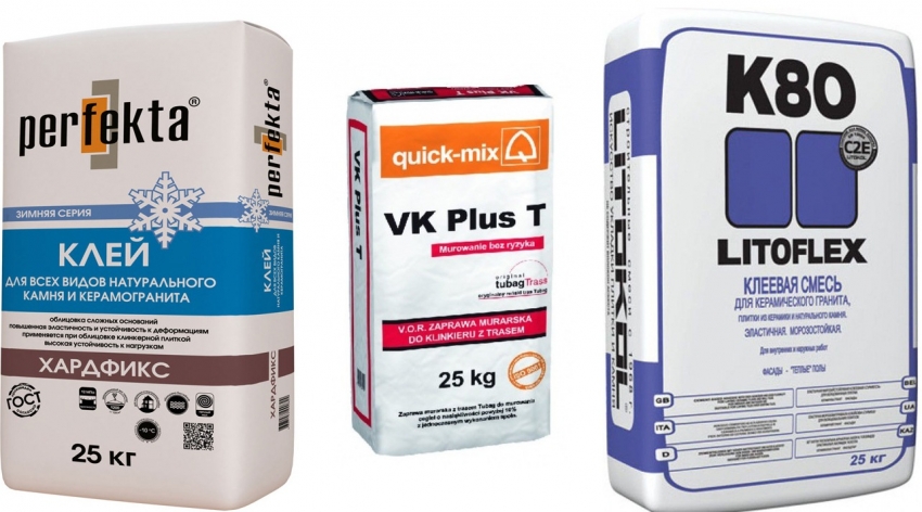 Далее следует приготовить клеевой раствор. Для этого используется тонкослойный сухой клей без примесей, который добавляют в необходимый объем воды. Для наружных работ подходят сухие смеси Quick-Mix FX 900, Ceresit CM 17, Feldhaus Spezial Klebe. Цементно-песчаную смесь лучше не использовать. Однако, если отдать ей предпочтений, тогда необходимо смешать в пропорции 4:1 или 3:1 песок и цемент марки М500 или М400 соответственно.