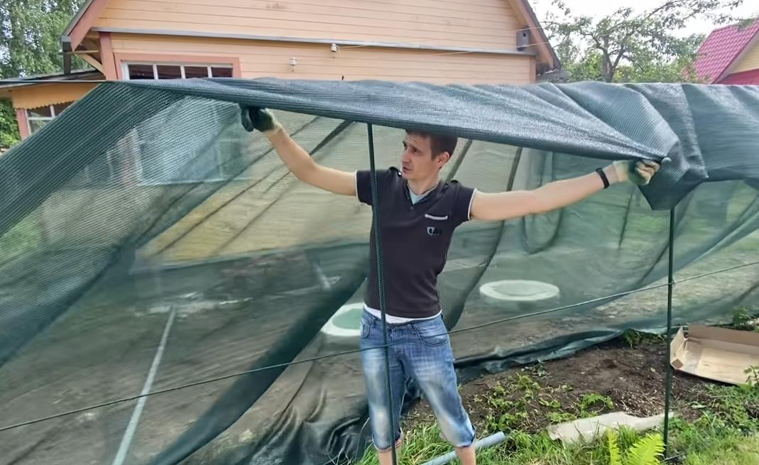 - загороженный сеткой дачный участок будет просматриваться даже через мелкое сечение ячеек;