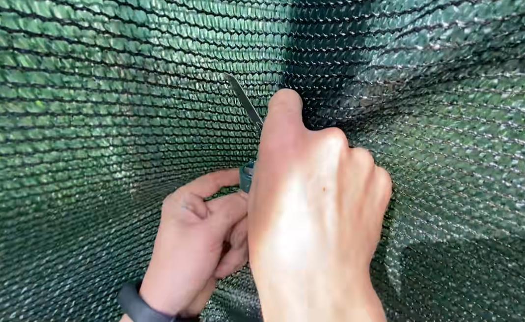 Не стоит затягивать хомуты слишком плотно, лучше оставить свободный ход, пределы которого не превышают 12-17 мм. Иначе в ветреную погоду сетка в местах крепления будет быстрее протираться.