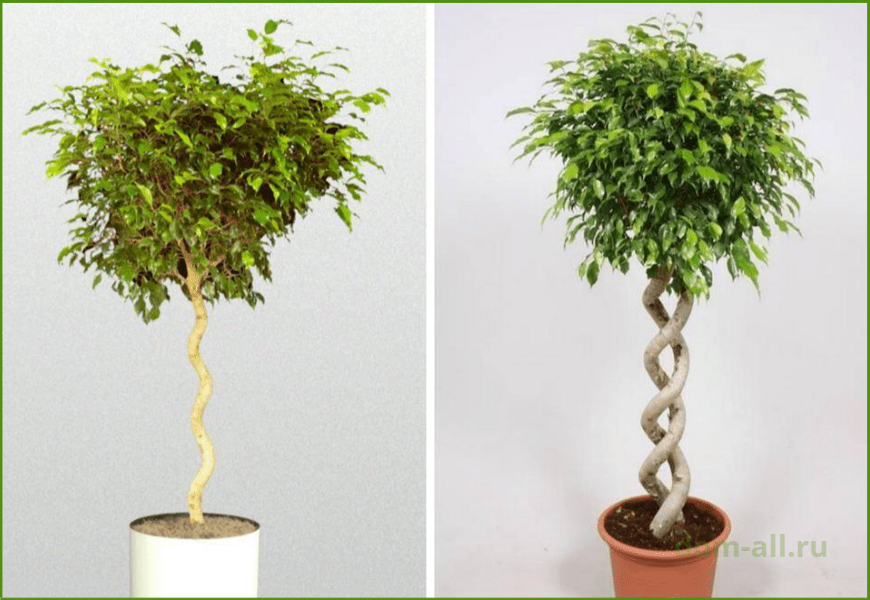 В больших комнатах, торговых центрах и теплицах вы наверняка много раз встречали фикус Бенджамина с высокими закрученными стволами и крупными листьями. А вот в квартирах намного чаще выращивают карликовые растения с декоративными изгибающимися стеблями и маленькими листочками.