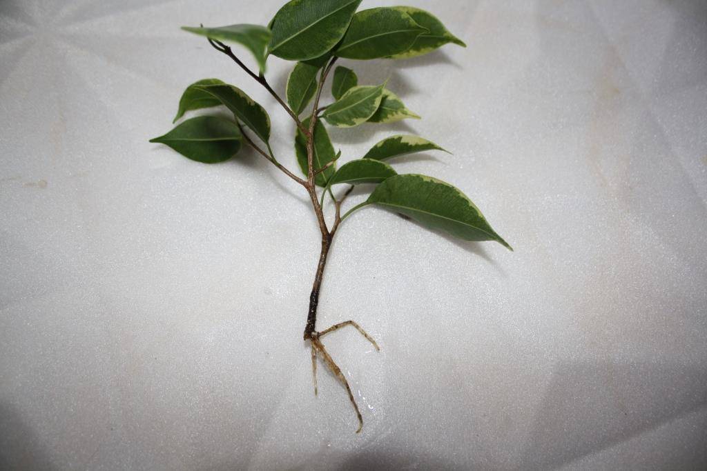 Фикус Бенджамина хорошо размножается оставшимися после обрезки стеблевыми черенками. Весной они быстро выпускают корешки даже в простой воде, налитой в стакан или банку. Из обрезанных стебельков выделяется млечный сок, поэтому перед тем, как опустить черенки в воду их слегка подсушивают. Если вы хотите еще больше ускорить рост, добавьте в воду какой-нибудь стимулятор корнеообразования, например, «Корневину». Как только появятся первые корешочки, черенки высаживают на постоянное место в подготовленную почву.