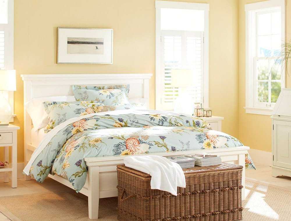 Текстиль может использоваться как однотонный, так и с орнаментом. Наличие узора зависит от стиля спальни и типа оформления стен. Если в комнате стены однотонные, текстиль с рисунком сделает ее более уютной. Для спальни с узорчатыми обоями лучше подобрать однотонные одеяла и шторы.