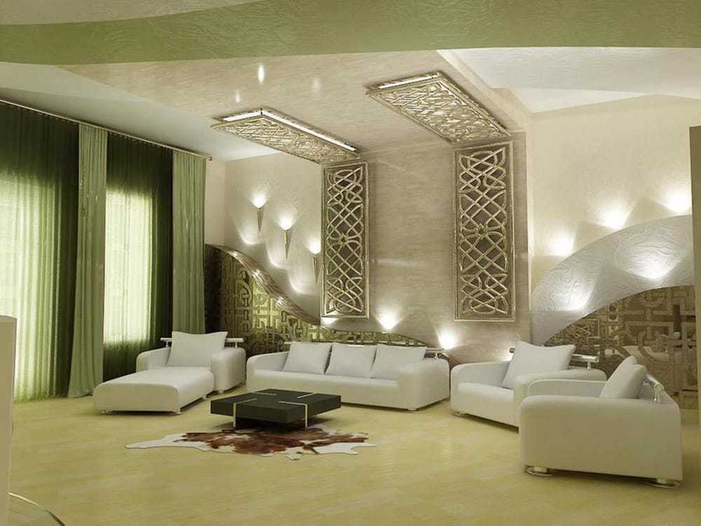 - Фисташковый с белым. Более универсального сочетания не найти. Его можно использовать в классическом, этническом, романтическом, старинном и современном стиле. Вне зависимости от того, какой из этих цветов является главенствующим, а какой – второстепенным, составленная из них композиция будет смотреться весьма динамично, освежающе и энергично. В бело-фисташковых гостиных всегда царит приятная атмосфера.