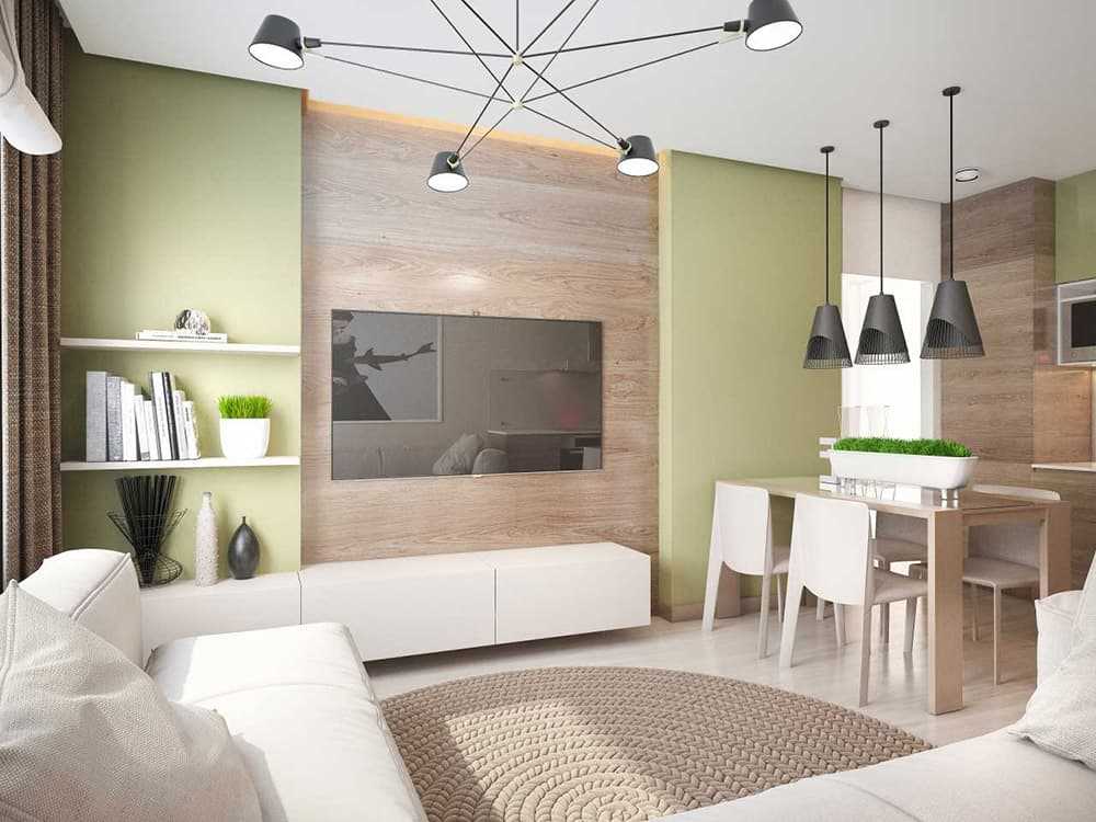 Посмотрев в Интернете удачные фото гостиной в фисташковом стиле, можно сделать вывод, что чаще всего используются 3 типа ее цветового оформления: