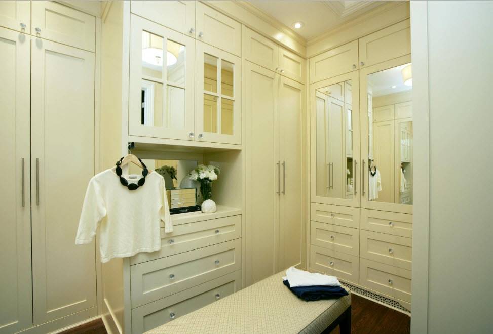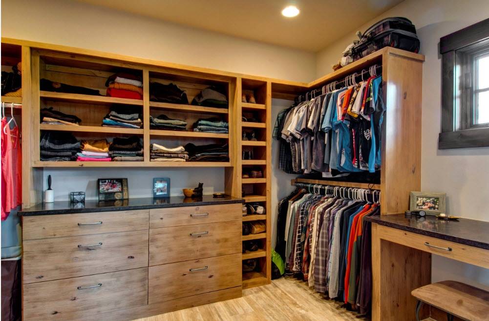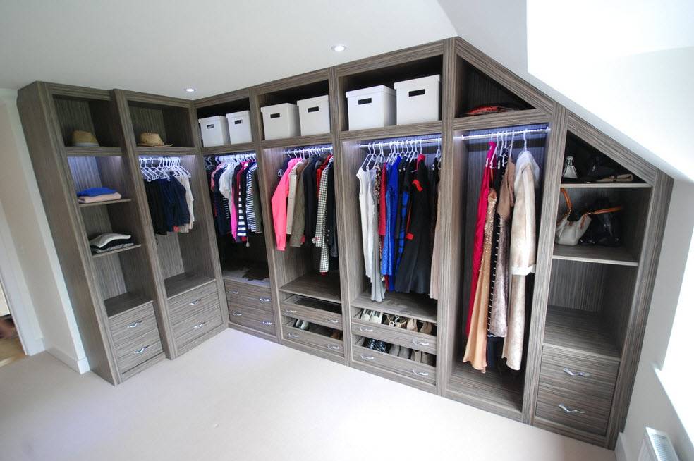В последнем варианте очень удобно расположены и закрытые шкафы и открытые вешалки, где можно вешать повседневную одежду.