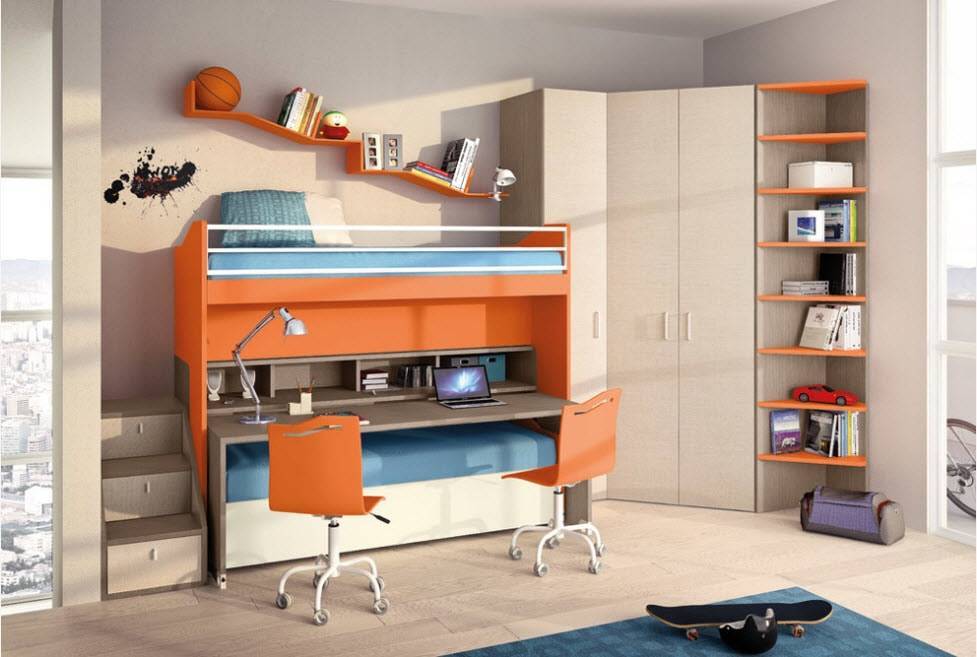 В подростковую комнату мальчика или «мужскую» спальню есть резон спроектировать угловой гардероб с полками и двухуровневыми штангами под короткую одежду.