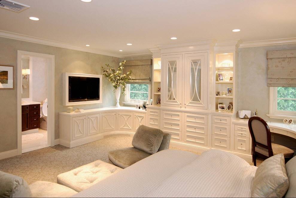 Из них большей популярностью пользуются именно встроенные модели. Такой вариант идеален, если в спальне есть ниша.