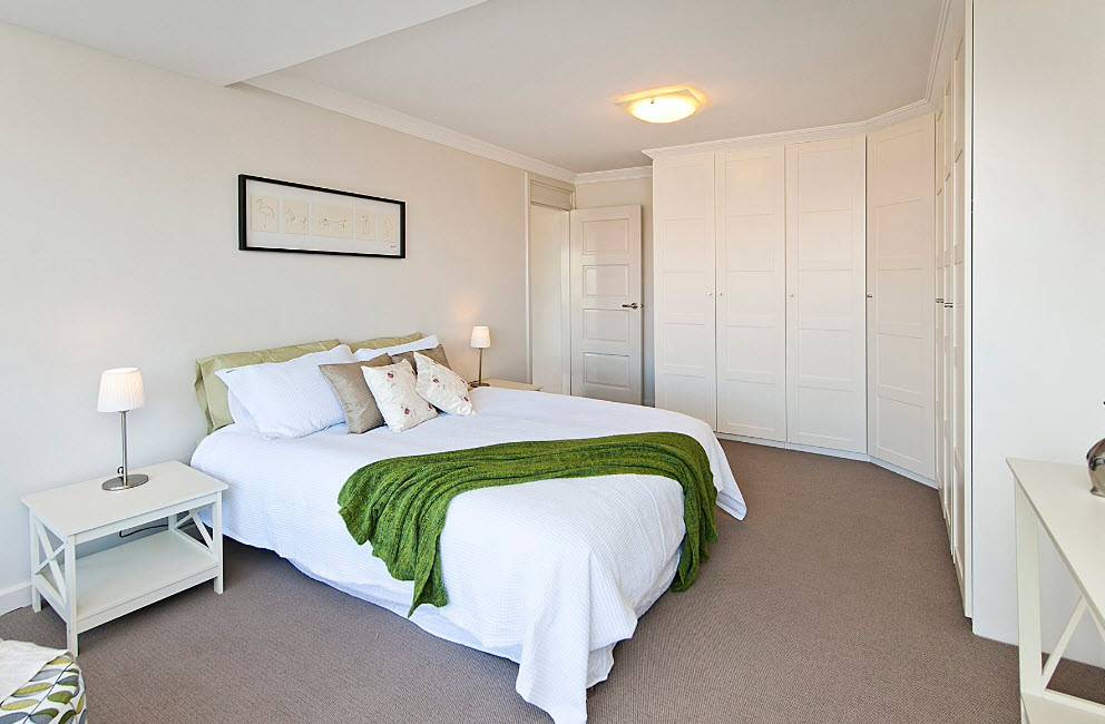 Даже в небольшой спальне можно найти место для встроенного шкафа. Это достигается подбором модели нужной конфигурации.