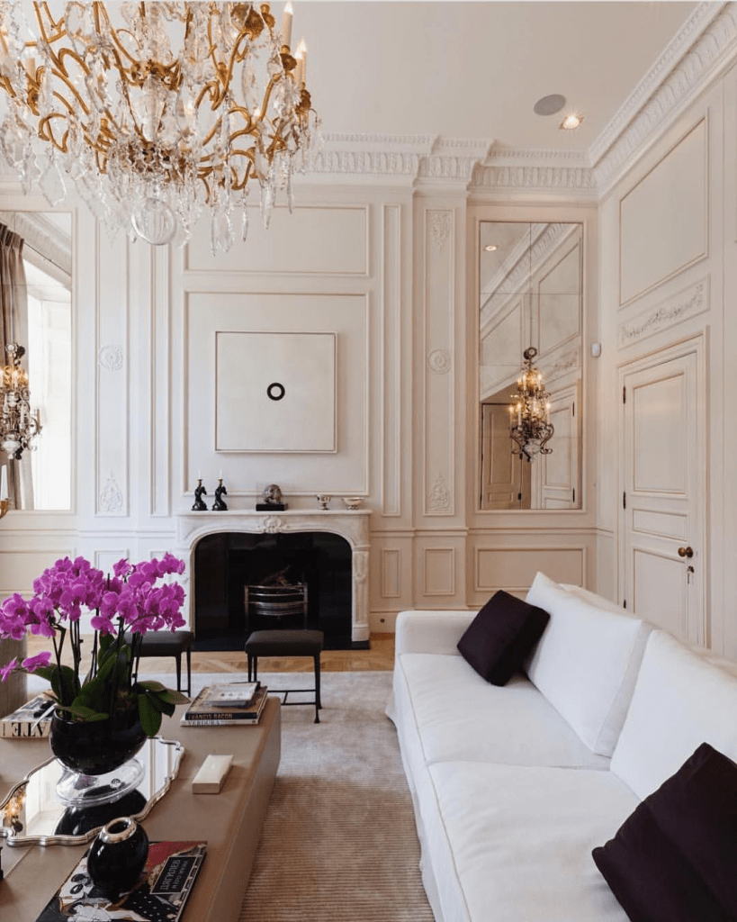 Вы также можете подчеркнуть французский стиль в интерьере с помощью техники. Комната в парижском стиле должна быть заполнена мебелью, известной как Луи. Эти элементы имитируют стиль Луи, который отличался волнистыми линиями и богатой резьбой. Французские интерьеры должны быть дополнены удобными сиденьями — эффективный диван будет идеальным.
