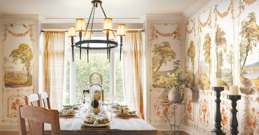 Нотки востока лучше всего подчеркнут традиционные пышные орнаменты, придающие утонченность и вкус, а также изображения сценок с флорой и фауной. Прованс, с его духом милой французской деревушки, дополнят холстовые фрески на стенах, изображающие все прелести загородных окрестностей – земляничные луга, лавандовые поля, травы. Изображения старинных улочек навеют дух романтизма.