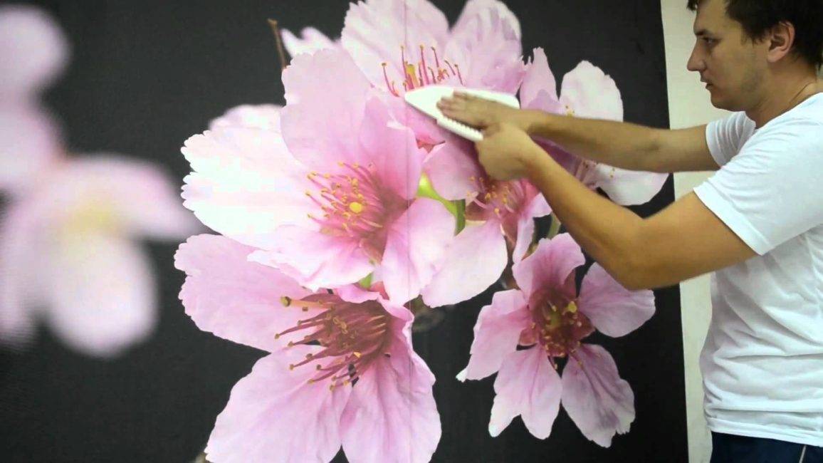 Процесс поклейки фотообоев