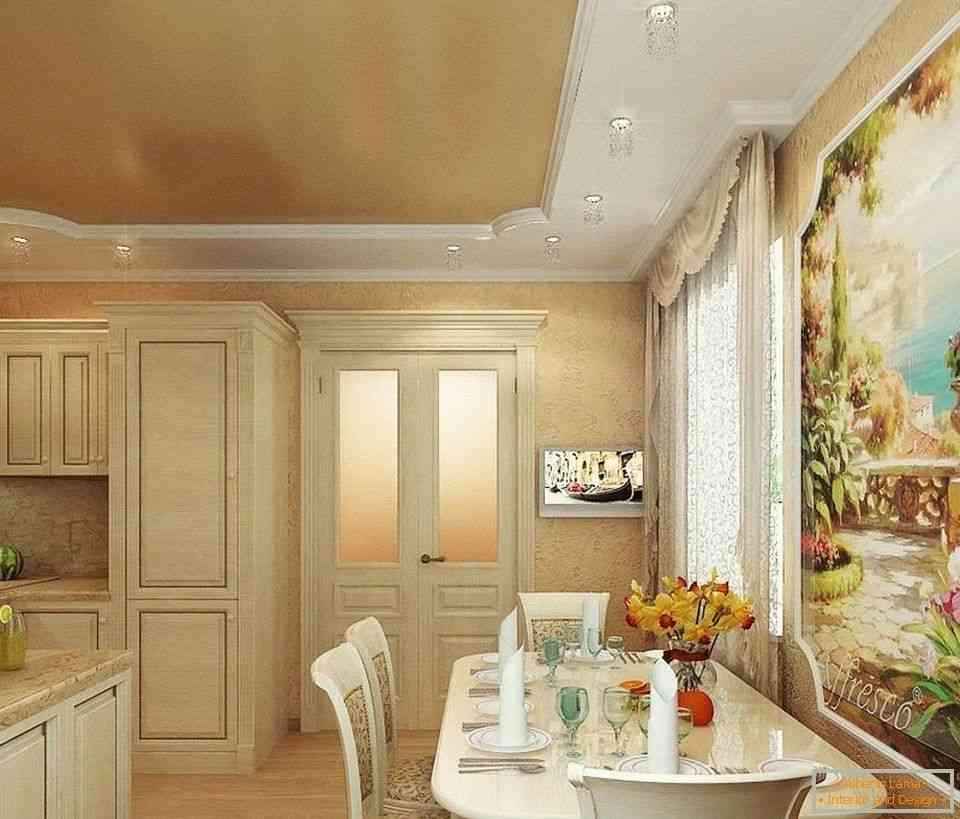 Фреска в интерьере кухни