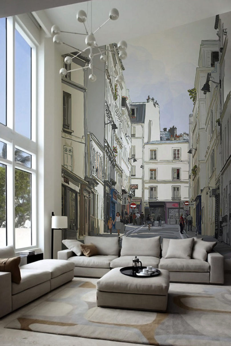 Гостиная – очень важная комната для каждого дома. Ее интерьеру можно придать особенный вид с помощью фрески на стене. Допустимо использовать как изображения в классических стилях, так и в современных