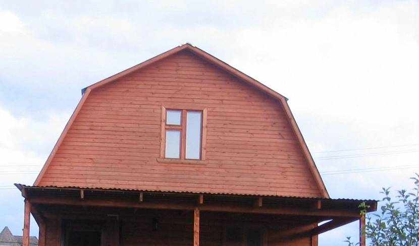Фронтон мансарды отделывают вагонкой с предварительным устройство изоляционных слоев. Зашивается паро- и гидроизоляция, а также утеплитель.