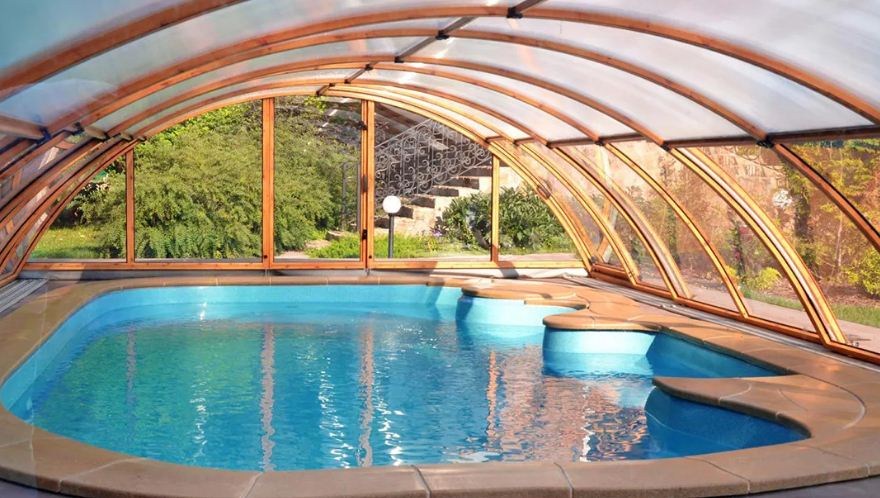 Скаты кровли сводятся в центр, образуя закругляющуюся к середине дугу. Наружная отделка производиться любыми материалами, но учитывая специфическую форму, процесс обшивки будет сопровождаться сложностями замеров и использования традиционных плинтусов.