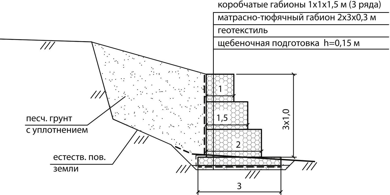 Процесс сооружения габиона