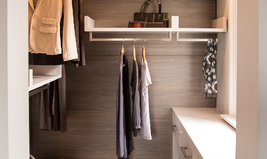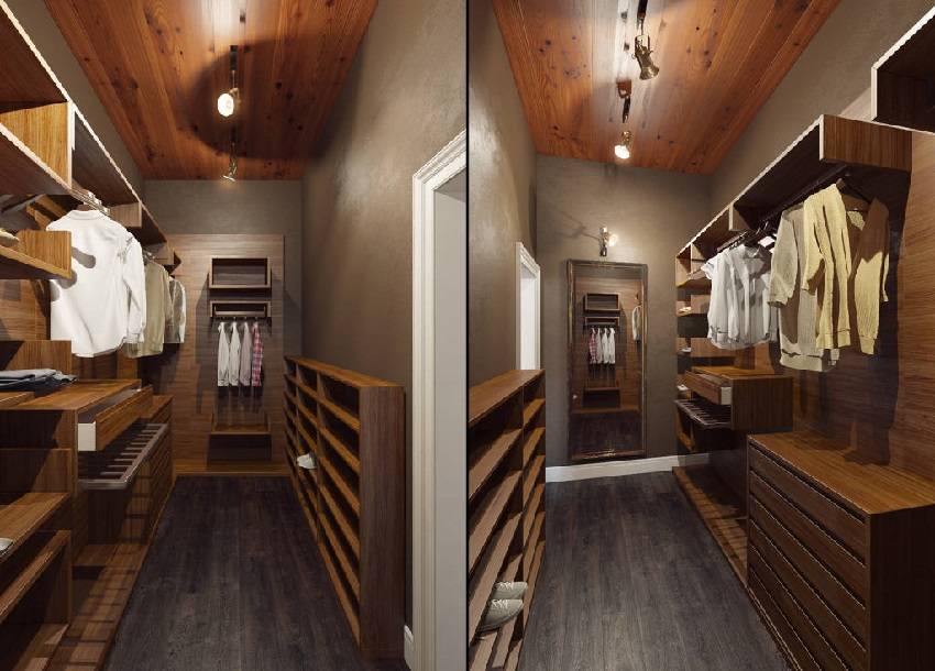 Только есть еще один нюанс – в отличие от дерева, ламинат не способен дышать, а для гардеробной комнаты это очень и очень важно