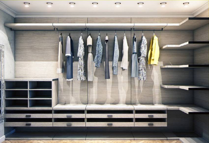 Дизайн гардеробной комнаты подбирают не только исходя из картинки, предложенной производителем