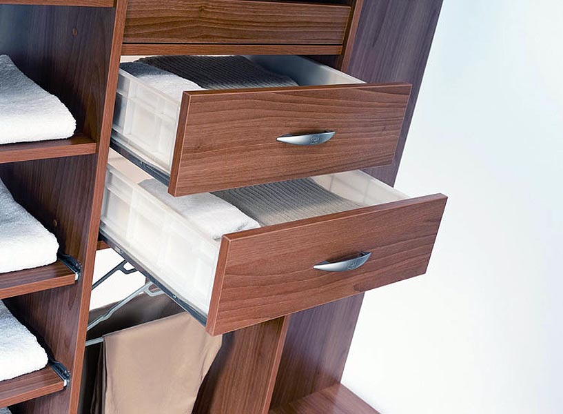 Обязательно в системах хранения должны быть полки. На полках можно хранить различное постельное белье, одеяла, пледы и другие объемные вещи. Полки могут быть стационарного или выдвижного типа.
