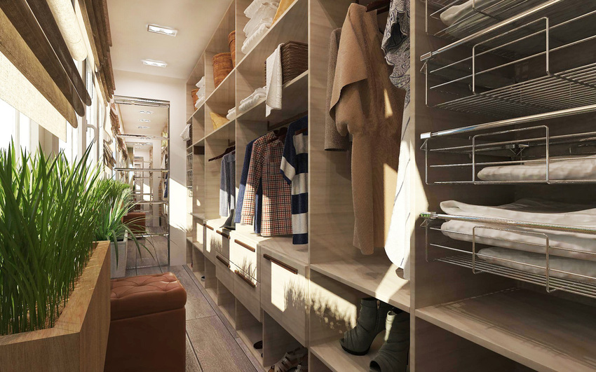 Подготавливая помещение для вещей, следует тщательно продумать до мелочей, как использовать его по максимуму. Наиболее оптимальным вариантом будет полностью задействовать всю площадь, вплоть до сантиметра.
