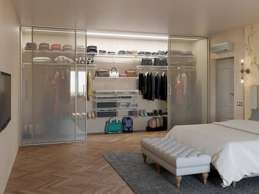 Для организации гардеробной в спальне можно использовать различные варианты.