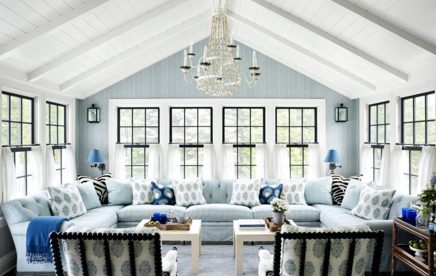 Также не стоить забывать о важности ориентации квартиры по сторонам света. Южные окна, пропитанные солнцем, хорошо затеняются зелеными оттенками, бирюзовым, голубым, возможно даже привнесение лилового цвета
