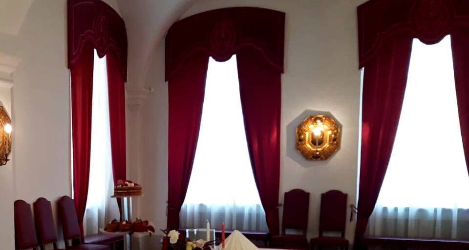 Еще один вариант для данного стиля — австрийские. Это тоже драпировка, причем похожая на французскую, только но не на всей поверхности, а только на части — вверху или внизу