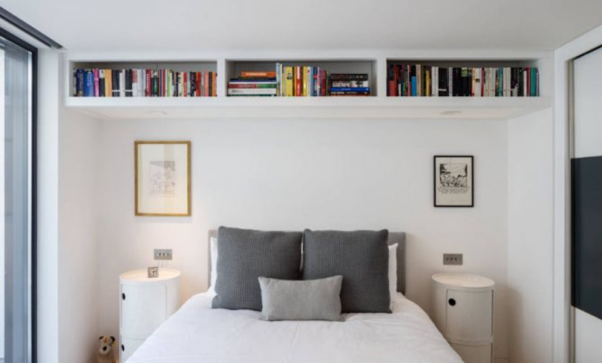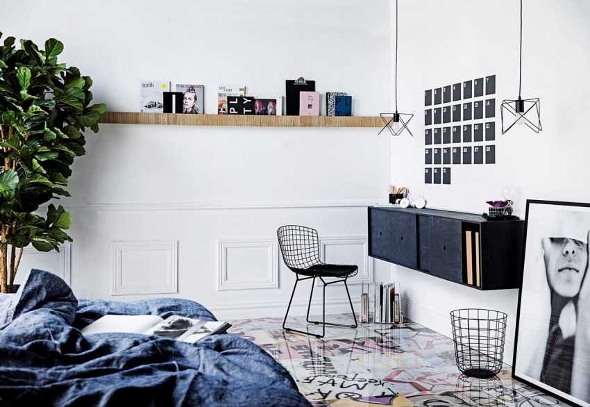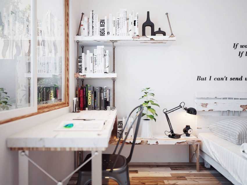 для хранения книг и журналов можно повесить книжные полки или поставить стеллаж;