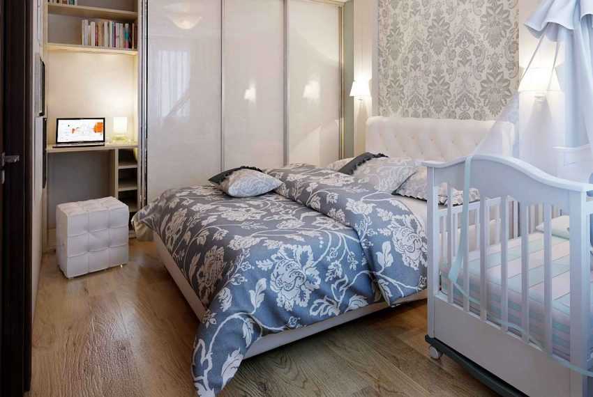 - Если будет ставиться кроватка для ребенка на какое-то время, место под нее нужно выделить заранее, чтобы она не перекрывала проход.