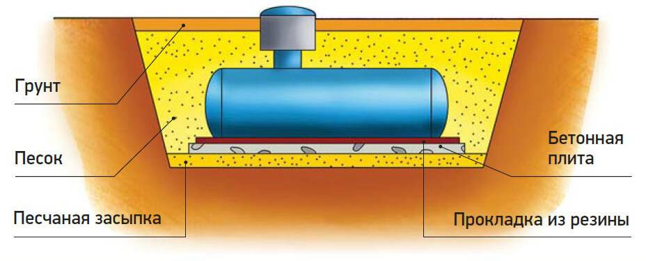 Для засыпки котлована с установленным резервуаром для газа используется песок