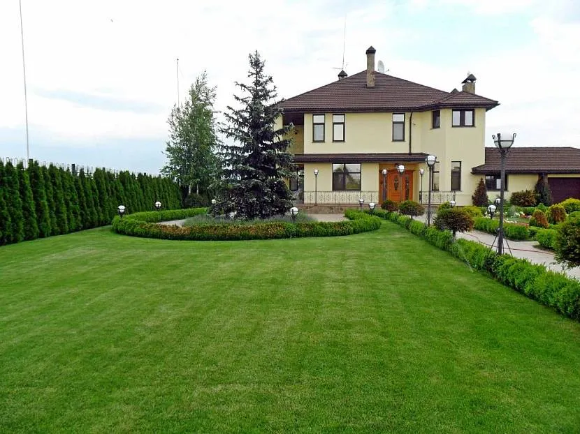 Красивый ландшафтный дизайн смешанного типа на придомовой территорииИсточник yandex.uz